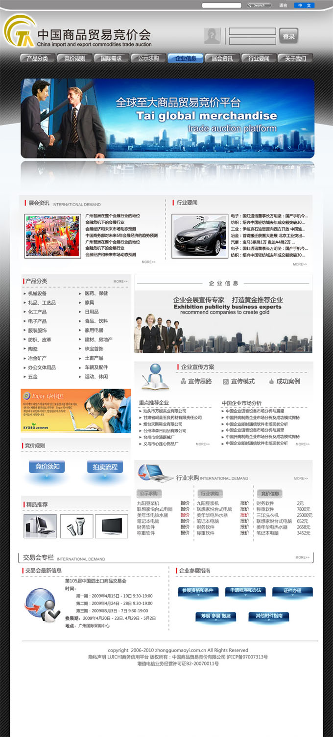項(xiàng)目名稱:中國(guó)商品貿(mào)易競(jìng)價(jià)有限公司網(wǎng)站建設(shè)簽定時(shí)間:2009-04-13