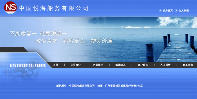 項(xiàng)目名稱:中國(guó)悅海船務(wù)有限公司網(wǎng)站建設(shè)簽定日期:2009年9月10日網(wǎng)站首頁(yè)效果圖: