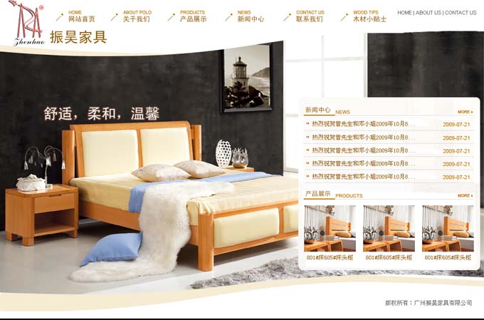 項目名稱:廣州振昊家具有限公司網站制作簽定日期:2009年9月16日網站首頁效果:位于廣州市番禺區大崗鎮北流工業區,占地面積50畝,首期生產車間建筑面積為一萬二千六百平方,設計生產力每月二千六百套.原材料選用德國櫸木,木材的訂購、加工、干燥