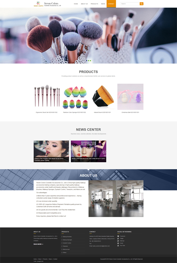 項目名稱:SevenColorsCosmeticAccessoriesCo.,Ltd做網站 簽訂時間:2019-5-10 項目網址:www.sevencolorscosmetic.com 公司簡介: SevenColorsCosmeti