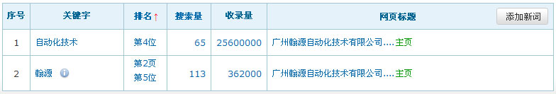 網站名稱:廣州翰源自動化技術有限公司網址:http://www.gzhanyuan.com/關鍵詞:自動化技術服務類型:免費送關鍵詞在百度排名數據: