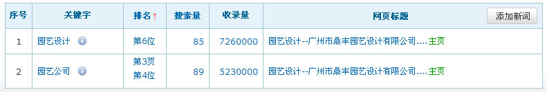 網(wǎng)站名稱:廣州市鼎豐園藝設計有限公司網(wǎng)址:http://www.dfyuanyi.com/關鍵詞:園藝設計、園藝公司服務類型:免費關鍵詞在百度排名數(shù)據(jù):(暫時只列出百度的排名數(shù)據(jù),其它搜索引擎的排名效果暫不列出)