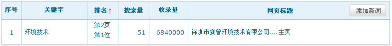 網站名稱:深圳市賽普環境技術有限公司網址:http://www.chinasaipu.com關鍵詞:環境技術服務類型:免費優化關鍵詞在百度排名數據:(暫時只列出百度的排名數據,其它搜索引擎的排名效果暫不列出)