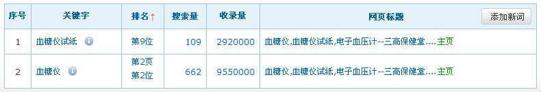 網站名稱:三高保健堂網址:http://www.feizhuliu1.com關鍵詞:血糖儀、血糖儀試紙服務類型:收費(1000元/年)關鍵詞在百度排名數據:(暫時只列出百度的排名數據,其它搜索引擎的排名效果暫不列出)