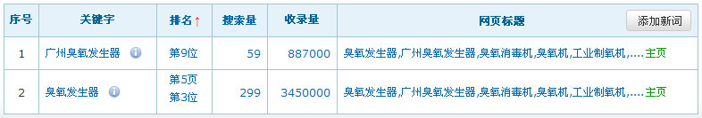 網站名稱:廣州臭氧發生器網址:http://www.gzchouyang.com關鍵詞:廣州臭氧發生器、臭氧發生器服務類型:免費關鍵詞在百度排名數據:(暫時只列出百度的排名數據,其它搜索引擎的排名效果暫不列出)