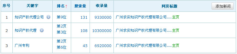網(wǎng)站名稱:廣州求實(shí)知識(shí)產(chǎn)權(quán)代理有限公司網(wǎng)址:http://www.qiushilawfirm.net關(guān)鍵詞:知識(shí)產(chǎn)權(quán)代理、知識(shí)產(chǎn)權(quán)代理公司服務(wù)類型:免費(fèi)關(guān)鍵詞在百度排名數(shù)據(jù):(暫時(shí)只列出百度的排名數(shù)據(jù),其它搜索引擎的排名效果暫不列出)