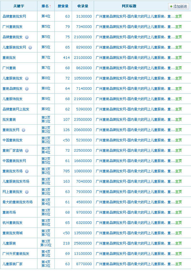網站名稱:廣州童裝品牌批發網網址:http://www.41469.com關鍵詞:廣州童裝,廣州品牌童裝,廣州外貿童裝批發,廣州童裝批發網,童裝批發網,童裝批發市場等服務類型:收費(8000元/年)關鍵詞在百度排名數據:(暫時只列出百度的排